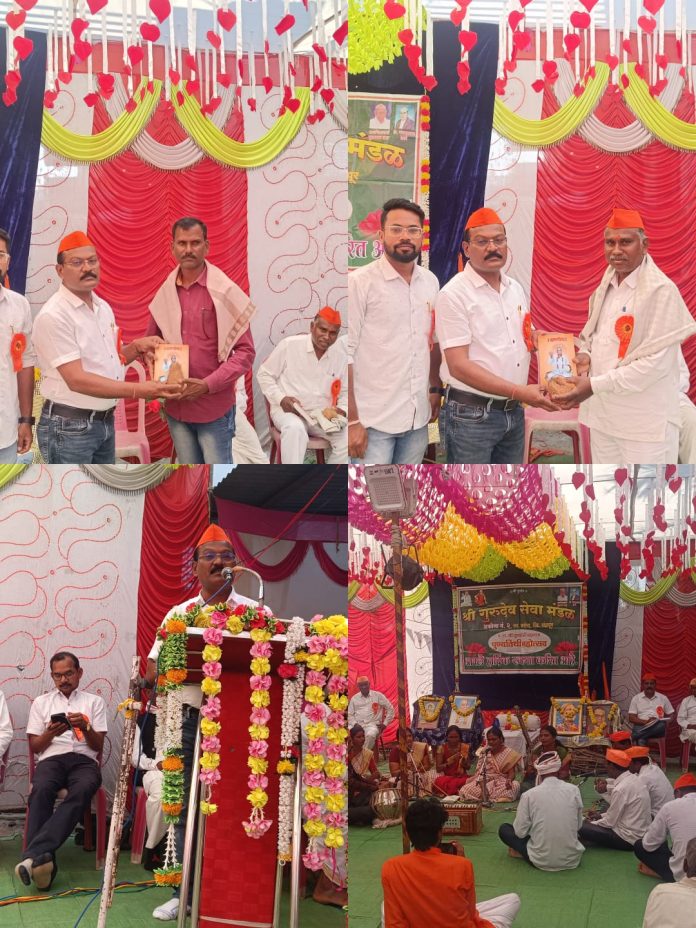 शेगाव बू(दि .28 जानेवारी) :- येथून जवळच असलेल्या व वरोरा तालुक्यातील अकोला नं.- २ या गावातील श्री गुरुदेव सेवा मंडळ द्वारा आयोजित राष्ट्रसंत तुकडोजी महाराज पुण्यतिथी सप्ताह निमित्त कार्यक्रमात मंडळ कृषी अधिकारी शेगाव बु. यांच्याकडून कृषी क्षेत्रामध्ये उल्लेखनीय कार्य करीत असलेल्या दोन प्रयोगशील शेतकरी बांधवांचा शाल ,श्रीफळ व ग्रामगीता देऊन सत्कार करण्यात आला. यामध्ये सेंद्रिय शेती,नैसर्गिक शेतमाल उत्पादक शेतकरी श्री नथ्थुजी गारघाटे, अकोला नं.२ व नवनवीन तंत्रज्ञान आत्मसात करून कृषी उत्पादनात भर टाकणारे,जवस उत्पादक शेतकरी, चिकु उत्पादक प्रयोगशील शेतकरी श्री संदीप थुल,राळेगाव यांचा मंडळ कृषी अधिकारी श्री विजय काळे यांच्या हस्ते सत्कार करण्यात आला.