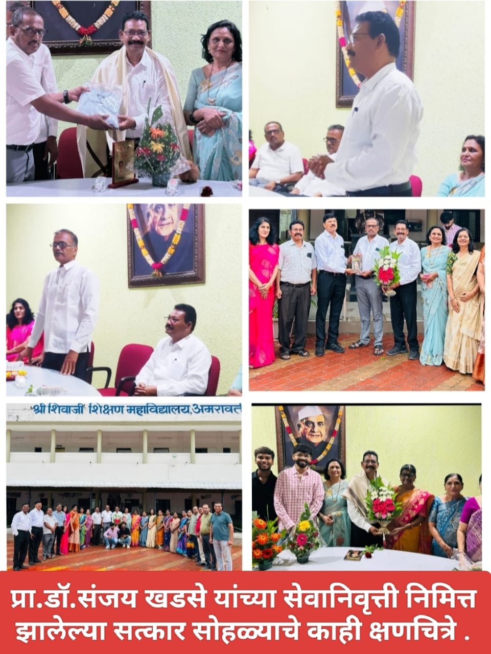 अमरावती(दि .3 जुलै) :- श्री शिवाजी शिक्षण संस्थेचे तत्कालीन अध्यक्ष स्व. वसंतराव धोत्रे यांनी माझी प्राध्यापकपदी केलेल्या निवडीला मी यथोचित न्याय देऊन श्री शिवाजी शिक्षण महाविद्यालयाच्या उन्नतीकरिता अथक परिश्रम घेतले. डॉ पंजाबराव देशमुख यांच्या स्वप्नातील आदर्श शिक्षक या शिक्षण महाविद्यालयातून घडविण्याचा सतत प्रयत्न केला. भाऊसाहेबांचे हे स्वप्न साकार करणे आज आवश्यक आहे. विद्यार्थ्यांचे हित जोपासून सदोदित त्यांना प्रामाणिकपणे मार्गदर्शन केले. कष्टकरी व होतकरू विद्यार्थ्यांना अभ्यास विषयक व आर्थिक मदतीतून उभारी दिली त्यातील अनेक विद्यार्थी आज उच्च पदावर स्थिरस्थावर झाले आहेत याचे मला समाधान वाटते. असे विचार प्रा.डॉ.संजय खडसे यांनी आपल्या सेवानिवृत्ती कार्यक्रम प्रसंगी मनोगतातून व्यक्त केले.