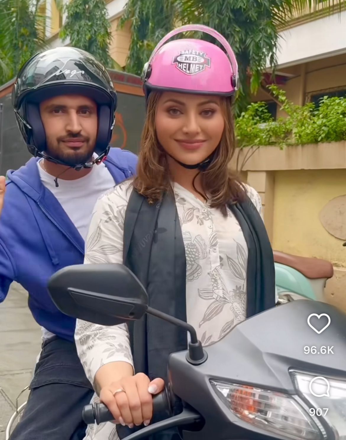 उर्वशी रौतेला और जस्सी गिल दोनों को ‘डेम उर ग्र’ ट्रेंड में शामिल होते देखा गया और जैसी कि उम्मीद थी, प्रशंसक उनके बेहद खूबसूरत लुक और वीडियो के मनोरंजन की तारीफ करने से खुद को रोक नहीं पाए। उर्वशी रौतेला और जस्सी दोनों को स्कूटी पर मुस्कुराते और बेहद मजाकिया अंदाज में देखा जा सकता है और वीडियो वाकई बहुत प्यारा है।