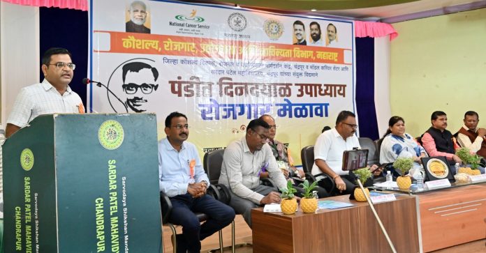 कौशल्य, रोजगार, उद्योजकता आणि नाविन्यता विभाग, सरदार पटेल महाविद्यालय आणि मॉडेल करीअर सेंटरच्या संयुक्त विद्यमाने, मुख्यमंत्री देवेंद्र फडणवीस यांच्या वाढदिवसाचे औचित्य साधून सरदार पटेल महाविद्यालयात पंडीत दिनदयाल उपाध्याय रोजगार मेळाव्याचे आयोजन करण्यात आले होते. यावेळी उद्घाटन करतांना डॉ. व्यवहारे बोलत होते. मंचावर प्रकल्प अधिकारी विकास राचेलवार, महाविद्यालयाचे प्राचार्य डॉ. पी.एम. काटकर, डॉ. जयेश चक्रवर्ती, उपप्राचार्य स्वप्नील माधवशेट्टीवार, जिल्हा माहिती अधिकारी राजेश येसनकर, जिल्हा व्यवसाय शिक्षण अधिकारी वैभव बोंगिरवार, कौशल्य विकास विभागाच्या सहायक आयुक्त अनिसा तडवी, कौशल्य विकास अधिकारी रोशन गबाले उपस्थित होते.