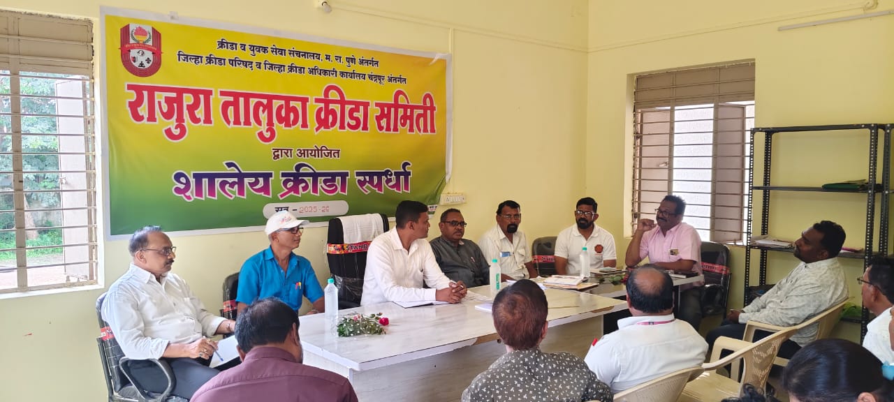 क्रीडा व युवक सेवा संचनालय महाराष्ट्र राज्य पुणे अंतर्गत जिल्हा क्रीडा परिषद व जिल्हा क्रीडा अधिकारी कार्यालय चंद्रपूर अंतर्गत राजुरा तालुका क्रीडा समिती द्वारा शालेय क्रीडा स्पर्धा संदर्भात राजुरा तालुका क्रीडा संकुल येथे दिनांक २२ जुलै रोजी सभा संपन्न झाली. क्रीडा अधिकारी चंद्रपूर संदीप उईके यांच्या अध्यक्षतेखाली सदर सभा घेण्यात आली. यावेळी प्रमूख अतिथी म्हणून हरिश्चंद्र विरुटकर , राजुरा तालुका क्रीडा संयोजक , किशोर चिंचोलकर , भास्कर फरकाडे, प्रभाकर साळवे , राजू डाहुले, राजेश लांडे आदींची प्रामुख्याने उपस्थिती होती. सभेचे सूत्रसंचालन हरिश्चंद्र विरुटकर यांनी केले तर आभार बादल बेले यांनी मानले. तालुका स्तरावर दहा प्रकारच्या शालेय क्रीडा होणार आहेत. त्यासंदर्भात आभासी पद्धतीने विद्यार्थांची नोंदनी करणे, जुन्या विद्यार्थ्याना प्रमोट करणे, खेळाडूंची नोंदणी करून बँकेत शुल्क भरणे, खेळाडूंचे ओळखपत्र काढणे तसेच शालेय क्रीडा संदर्भातील नियम व अद्ययावत माहिती या सभेत देण्यात आली. राजुरा तालुक्यातून शालेय क्रीडा स्पर्धेमध्ये विद्यार्थ्यांनी देश पातळीवर नावलौकिक करावे असे आवाहनही क्रीडा अधिकारी संदीप उईके यांनी यावेळी केले. सभेला हर्षल क्षीरसागर , एम.एच.सर्जेकर, ए . एम.कवाळे, भार्गवी कोडाली, चैताली कन्नाके, पी. एस. श्रीरामे, प्रमोद ढाफरे, जोगेंद्र नळे, बंडू ताजने, महेंद्र चौधरी ,इकबाल शेख, स्वप्निल डंभारे आदींसह राजुरा तालुक्यांतील क्रीडा शिक्षक, प्रशिक्षक उपस्थीत होते.