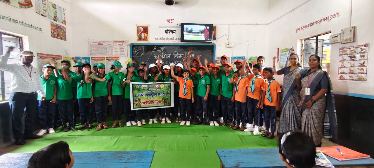बालविद्या शिक्षण प्रसारक मंडळ राजुरा द्वारा संचालित आदर्श मराठी प्राथमिक विद्यामंदिर तथा आदर्श हायस्कूल राजुरा येथील राष्ट्रीय हरीत सेना , इको क्लब , स्काऊट – गाईड्स युनिटच्या विद्यार्थ्यांना कारगिल विजय दिनाच्या निमित्ताने हे युद्ध कसे घडले याचा लघु चित्रपट दाखविण्यात आला व माहिती देण्यात आली. या युद्धात शहीद झालेल्या भारतीय सैनिकांना श्रद्धांजली अर्पण करण्यात आली. कार्यक्रमाच्या अध्यक्षस्थानी बादल बेले, राष्ट्रीय हरित सेना विभाग प्रमुख तथा स्काउट्स मास्तर यांची उपस्थिती होती.तर प्रमूख अतिथी म्हणून रूपेश चीडे, स्काउट्स मास्तर, सुनीता कोरडे, रोशनी कांबळे, गाईड्स कॅप्टन, प्राजक्ता साळवे यांची उपस्थिती होती.