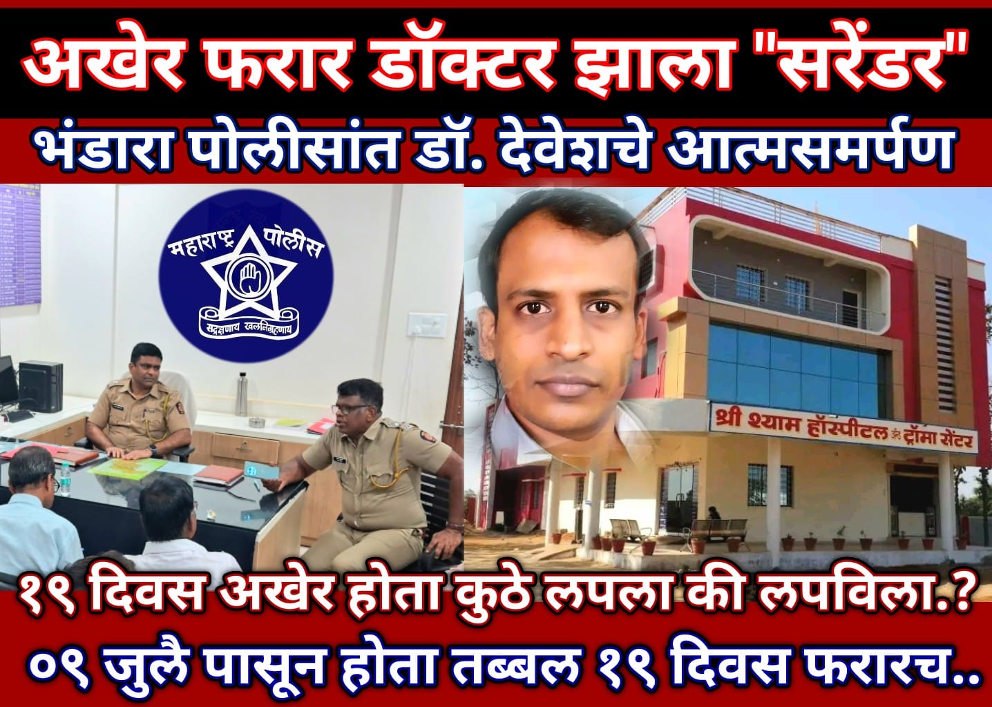 आता फरार डॉक्टरने भंडारा पोलीसांसमोर सरेंडर केले आहे. परंतु जनता हे म्हणत आहेत की, हा १९ दिवसांपासून अखेर होता तरी कुठे लपला की दडविलेला.? पोलीस विभागाने या प्रकरणी न्यायालयाकडे त्याचा पीसीआर घेण्याची गरज आहे. कारण त्याला लपविणारे सुद्धा आज आरोपी आहेत आणि हेच सत्य समोर आले पाहिजे अशी जनतेमधून चर्चा सुरू झाली आहे.