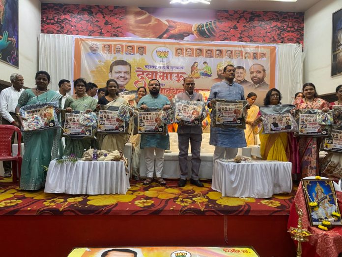 भद्रावती (दि.11 ऑगस्ट) :- भारतीय जनता पार्टी महीला आघाडी, भद्रावती व्दारा मागासवर्गीय आयोगाचे अध्यक्ष हंसराज अहीर यांच्या मार्गदर्शनात, महाराष्ट्र राज्याचे मुख्यमंत्री आदरणीय देवेंद्र फडणवीस यांचेकडून रक्षाबंधन निमित्त बहीणीसाठी देवाभाऊ विशेष उपहार सोहळा कार्यक्रमाचे स्थानिक श्री मंगल कार्यालय येथे आयोजन करण्यात आले होते. आज (दि.१०) ला या सोहळ्यात उपस्थित हजारो बहीनींना रक्षाबंधन निमित्त भेटवस्तु देण्यात आल्या.