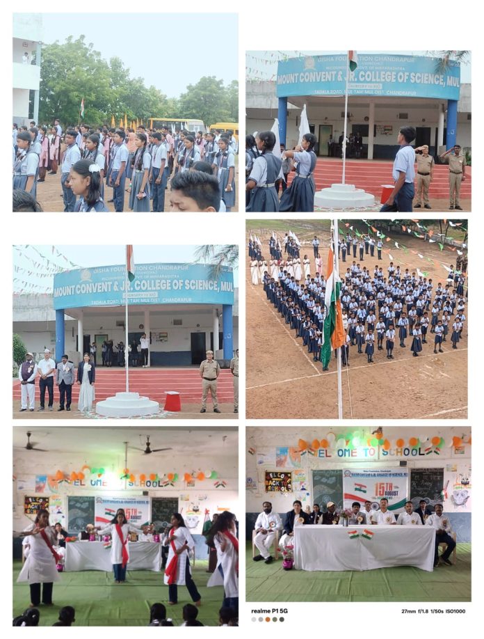 मूल(दि.16 ऑगस्ट) :— दिनांक १५ ऑगस्ट २०२५ रोजी, शुक्रवार, दिशा फाउंडेशन संचालित माउंट कॉन्व्हेंट अँड ज्युनिअर कॉलेज ऑफ सायन्स, मूल तसेच कर्मवीर भाऊराव पाटील महाविद्यालय, मूल येथे ७९ वा स्वातंत्र्य दिन देशभक्तीपूर्ण वातावरणात आणि मोठ्या उत्साहात साजरा करण्यात आला.