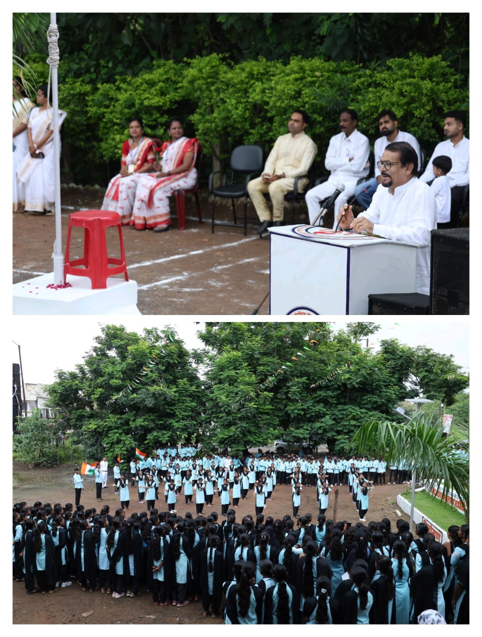 राजुरा(दि.16 ऑगस्ट) :- ॲड.यादवराव धोटे महाविद्यालय, राजुरा येथे स्वातंत्र्य दिन उत्साहपूर्ण वातावरणात साजरा करण्यात आला. सकाळी ठिक 7:30 वाजता कार्यक्रमाचे अध्यक्ष व प्रमुख पाहुणे संस्थेचे उपाध्यक्ष तथा राजुरा विधानसभा क्षेत्राचे माजी आमदार ॲड. संजय धोटे यांच्या हस्ते ध्वजारोहण संपन्न झाले. यावेळी त्यांनी उपस्थित सर्वांना स्वातंत्र्य दिनाच्या हार्दिक शुभेच्छा दिल्या आणि लगेचच राज्यगीत घेण्यात आले.कार्यक्रमांतर्गत थोर नेत्यांच्या प्रतिमांचे पूजन व माल्यार्पण करण्यात आले.