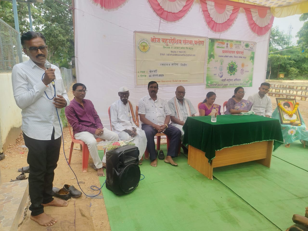 वरोरा(दि.1 सप्टेंबर) :- तालुक्यातील खेमजई येथे स्वर्गीय अनिल गुलाब पोईनकर स्मृती प्रित्यर्थ ओज बहुउद्देशीय संस्था वरोरा,ग्रामपंचायत खेमजई व हेल्पेज इंडिया यांच्या संयुक्त विद्यमाने रक्तदान व आरोग्य शिबिराचे आयोजन करण्यात आले.