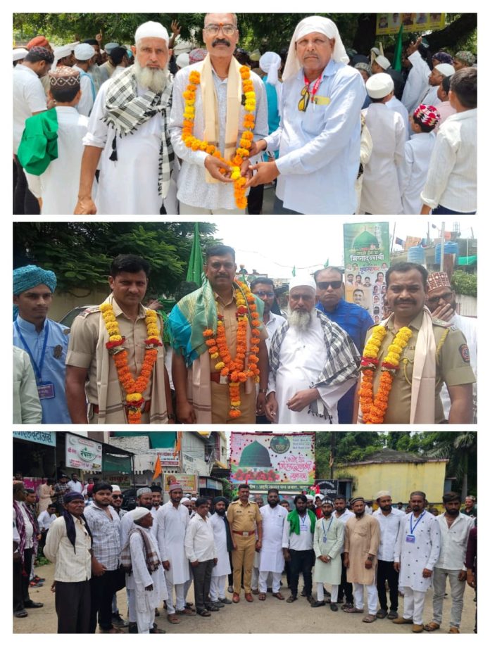 धार्मिक सलोखा, उत्साह आणि शांततेच्या वातावरणात पार पडलेला हा जुलूस शहरवासीयांसाठी अवीस्मरणीय ठरला. यावेळी ए आय एम आय एम तालुका अध्यक्ष सज्जाद शेख अजीज युवक तालुका अध्यक्ष फैजुल्ला खान नागिना मस्जिदचे सदर ताहेर भाई, गौसिया मस्जिदचे सदर जमीर मल्लनस, इरफान कालुत, नूर भाई, इरशाद राजा, नदीम भाई, सज्जाद, सिराज रजा, नजीर भाई, रफिक गाईड, जावेद भाई (बीएसएनएल), सय्यद मोसिन, शेख सईद, जावेद दोसानी, सैफ दोसानी नवाब शेख अरसलान कलीम खान रिजवान फारुकी शेख अजीज शोएब शेख शहीद लाला शेख अयूब शेख कयूम अरशद खान सोहेल शेख अभिजीत कांबले सलमान खान नजीर शेख इर्शाद शेख वसीम शेख सोनू शेख रियाज शेख इमरान शेख मोबीन शेख शब्बीर शेख समीर खान शोएब शेरा शाहरुख शेख शाहिद लाला मुस्तकीन शेख यांच्यासह हजारो सर्व धर्मीय समाजबांधव उपस्थित होते.