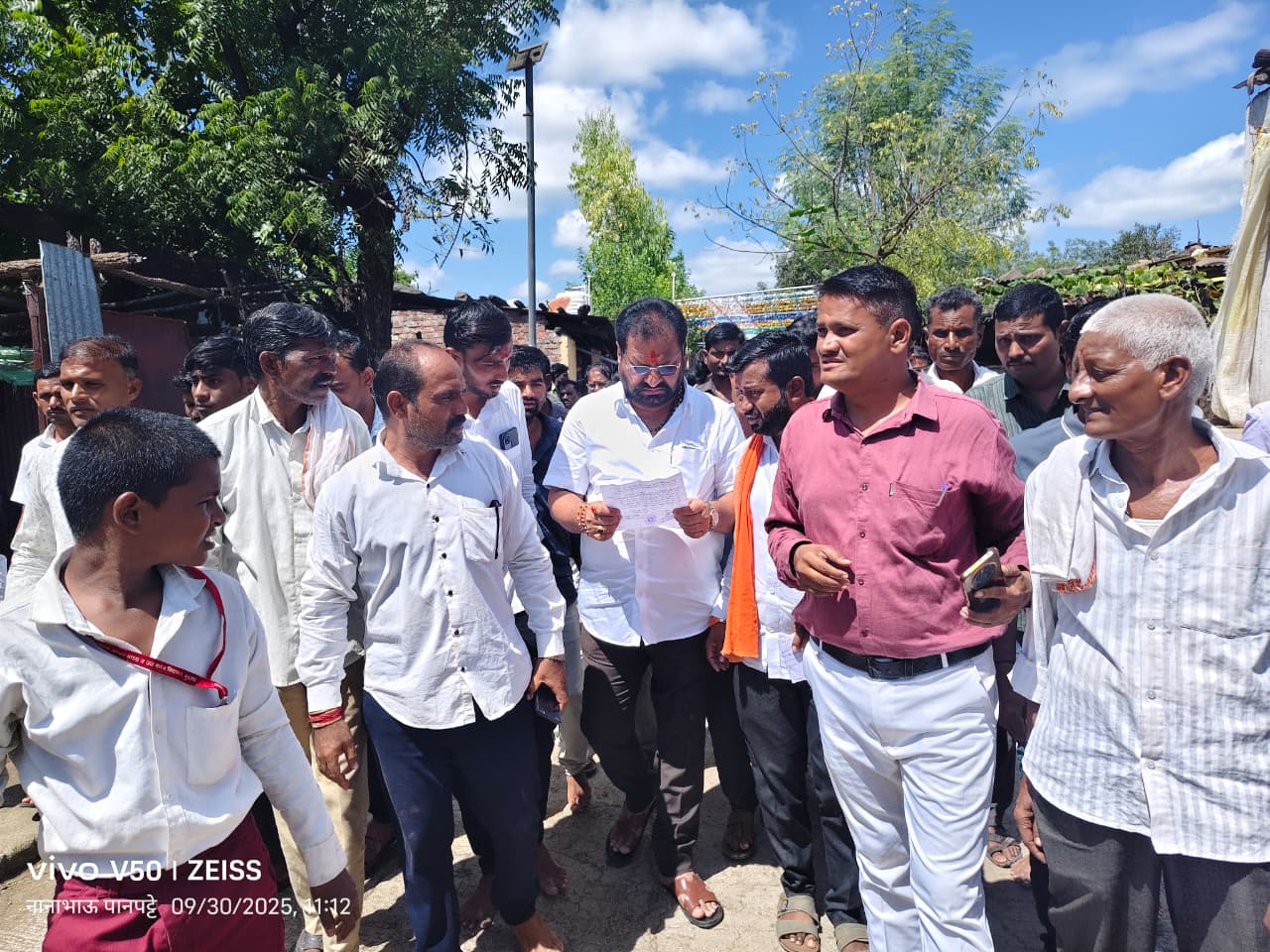 या वेळी प्रशासनाचे कर्मचारी मंडळअधिकारी राम पंडित, शिवसेनेचे कार्यकर्ते, पदाधिकारी प्रमोद उर्फ शाखा भरवाडे, विशाल पांडे,भिमराव भालेराव, तालुका प्रमुख रविंद्र भारती,उपतालुका प्रमुख नानाभाऊ पानपट्टे, सरपंच वैभव बरडे, उपसरपंच अशोक वानखेडे,माजी उपसरपंच रमेश जाधव, गजानन पाटील,अतुल येनकर, दत्ता दांडेगांवकर, गोलू पठाण, शरद गोभे, राहुल वानखेडे, रवि जाधव, जितू चव्हाण तसेच तलठी बोक्षे मॅडम हजर होत्या. मुलांना येथील नुसकानग्रस्तांची पाहणी झाली हे ठीक आहे परंतु दहा दिवसाचा कालावधी उलटला तरी दहिसावळी येथील आत्महत्याग्रस्त शेतकऱ्यांच्या कुटुंबीयांना खासदार महोदयांनी अद्याप भेट घेण्याचे टाळले आहे.