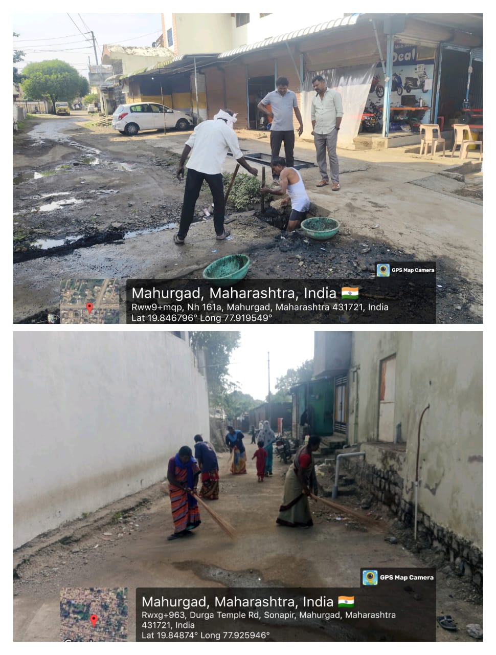 पावसाळ्यात अतिवृष्टी सह मुसळधार पाऊस पडल्याने शहरातील सर्वच नाल्या तुंबल्या होत्या तर ठिकठिकाणी खड्डे पडल्याने रहदारीस अडथळा होत होता त्यामुळे नगराध्यक्ष फिरोज भाई दोसानी मुख्याधिकारी विवेक कांदे यासह कार्यालय अधीक्षक संदीप गजलवाड यांनी शहरातील सर्व रस्ते व नाल्यांची पाहणी करून तत्काळ खड्डे बुजवणे यासह नाल्या स्वच्छ करणे तसेच रस्त्यावरील छोट्या पुलाखाली दगड माती कचरा जाऊन बसलेला असल्याने ते स्वच्छ करणे यासह हागणदारी मुक्ती ला प्रथम प्रधान्य देऊन शहरात महास्वच्छता अभियान सुरू केल्याने नगरपंचायतचे कौतुक होत आहे.