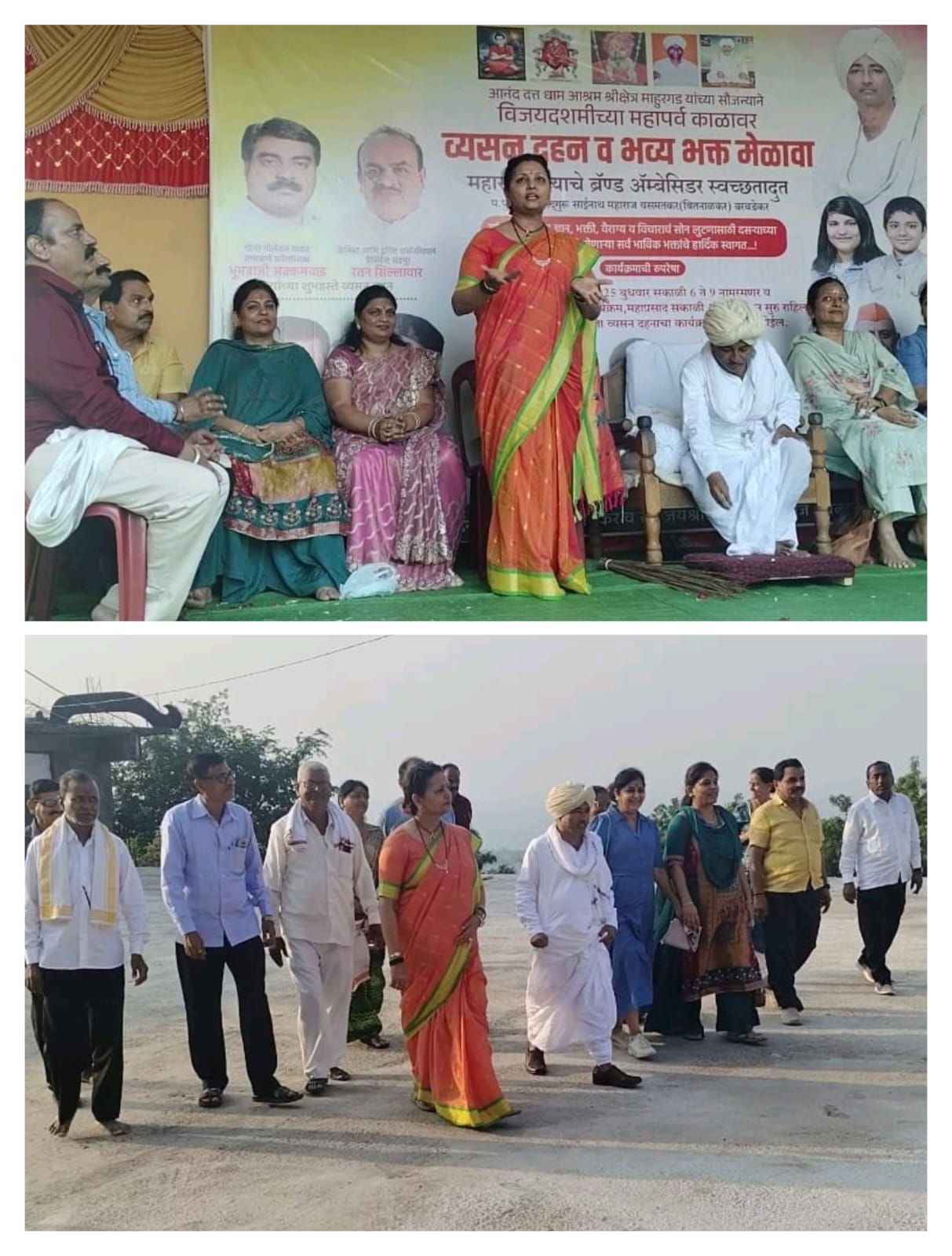 माजी आमदार तसेच माजी सनदी अधिकारी मा. श्यामसुंदर शिंदे यांच्या सुविद्य, सुसंस्कृत व कर्तबगार पत्नी ज्येष्ठ समाजसेविका सौ. आशाताई श्यामसुंदर शिंदे आनंद दत्तधाम आश्रम, श्रीक्षेत्र माहूरगड येथे भेट दिली असता त्यांचा सद्गुरु द भ प राष्ट्रसंत तथा स्वच्छता दूत महाराष्ट्र राज्याचे ब्रँड अँबेसिडर साईनाथ महाराज वसमतकर यांनी सन्मानपूर्वक गौरव केला.