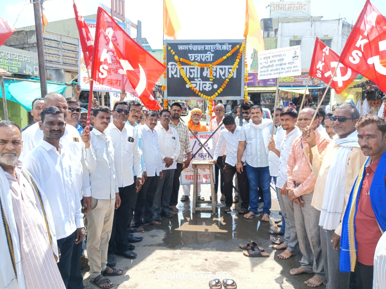आज दिनांक २२/१०/२०२५ रोजी अखिल भारतीय किसान सभा, प्रहार जनशक्ती पक्ष, किसान ब्रिगेड व वंचित बहुजन आघाडीच्या वतीने माहुर येथील डॉ बाबासाहेब आंबेडकर चौक येथे केंद्र सरकारने सोयाबीनला ५३२८ रुपये हमीभाव जाहीर केला आहे.प्रत्यक्षात मात्र हंगामाच्या शेतकऱ्यांना आपले सोयाबीन ३७०० रुपये प्रतिक्विंटल प्रमाणे विकावे लागत आहे.केंद्र सरकारने जाहीर केलेला हमी भाव शेतकऱ्यांना यासाठी प्रत्येक बाजार समितीमध्ये सोयाबीन सरकारी खरेदी केंद्र सुरू करावे व शेतकऱ्यांना केंद्र सरकारने जाहीर केल्या प्रमाणे ५३२८ रुपये प्रतिक्विंटल भाव मिळावा या व इतर मागण्यांसाठी आज बळी प्रतिपदेच्या दिवशी आंदोलन करण्यात आले.