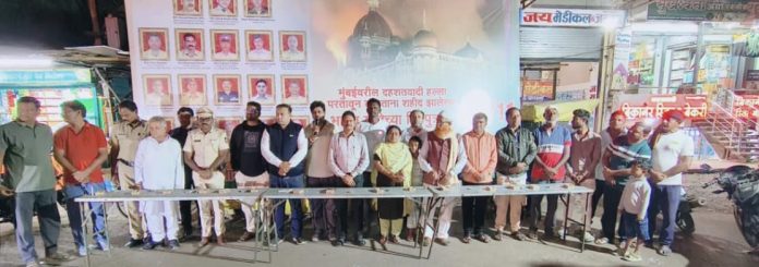राष्ट्रवादी काँग्रेस पक्षाचे तालुकाध्यक्ष मेघराज जाधव म्हणाले, “दहशतवादाचा समूळ नाश करण्यासाठी प्रत्येक नागरिकांनी दक्ष राहिले पाहिजे आणि समाज एकजुटीने काम करणे आवश्यक आहे.”