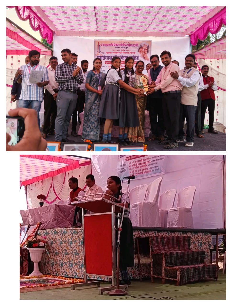 तसेच इयत्ता 9 वीतील आरुषी भीमटे हिने वक्तृत्व स्पर्धेत प्रथम क्रमांक, तर प्रश्नमंजुषा स्पर्धेत द्वितीय क्रमांक मिळवून दुहेरी यश संपादन केले. विद्यार्थ्यांच्या सर्व कामगिरीत विज्ञान शिक्षक अशपाक सय्यद यांचे मार्गदर्शन मोलाचे ठरले.