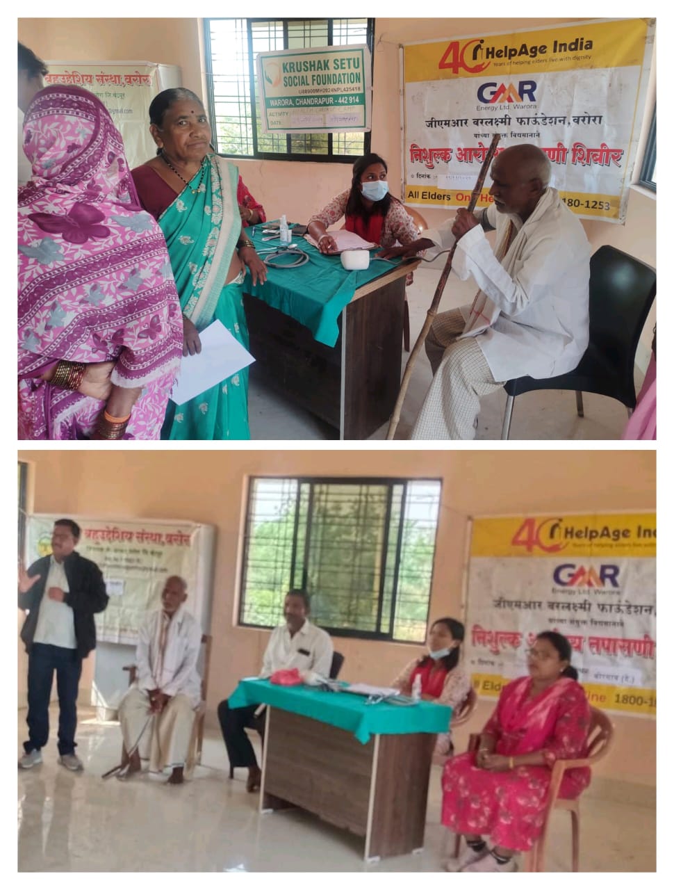 हेल्पेज इंडिया एम.एच. यु.व वरलक्ष्मी फाउंडेशन वरोरा द्वारा गावातील 93 जेष्ठ नागरिकांची आरोग्य तपासणी करून उपचार करण्यात आले.