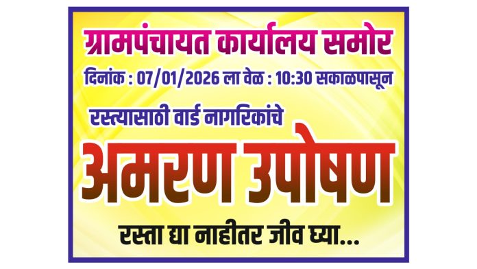 गडचिरोली(दि.6 जानेवारी) :- चामोर्शी दोटकुली गावातील नागरिकांना दैनंदिन ये-जा करण्यासाठी आवश्यक असलेला रस्ता अद्यापही उपलब्ध करून न दिल्याने संतप्त नागरिकांनी दिनांक ०७ जानेवारी २०२६ रोजी सकाळी १०:३० वाजल्यापासून ग्रामपंचायत कार्यालयासमोर आमरण उपोषण करण्याचा इशारा दिला आहे.
