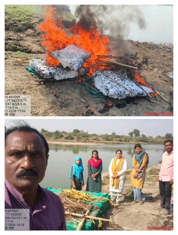 माहूरचे तहसीलदार आणि पोलीस निरीक्षक निवडणूक कामात व्यस्त असल्याचा फायदा घेऊन पैनगंगा नदी पत्रावरील कु प्रसिद्ध चोले पेंड काळे पेंड येथून मोठ्या प्रमाणात वाळू तस्करी सुरू असल्याची माहिती मिळाल्याने जिल्हाधिकारी राहुल कर्डिले सहाय्यक जिल्हाधिकारी जेनीत चंद्रा दोन्तूला यांच्या मार्गदर्शनाखाली तहसीलदार अभिजीत जगताप यांनी महसूल पथकास या ठिकाणी पाठविले असता ग्राम महसूल अधिकाऱ्यांनी संयुक्त कारवाई करत तीन तराफे जाळून नष्ट केल्याची घटना दि 17 रोजी 1 वाजता घडली आहे.